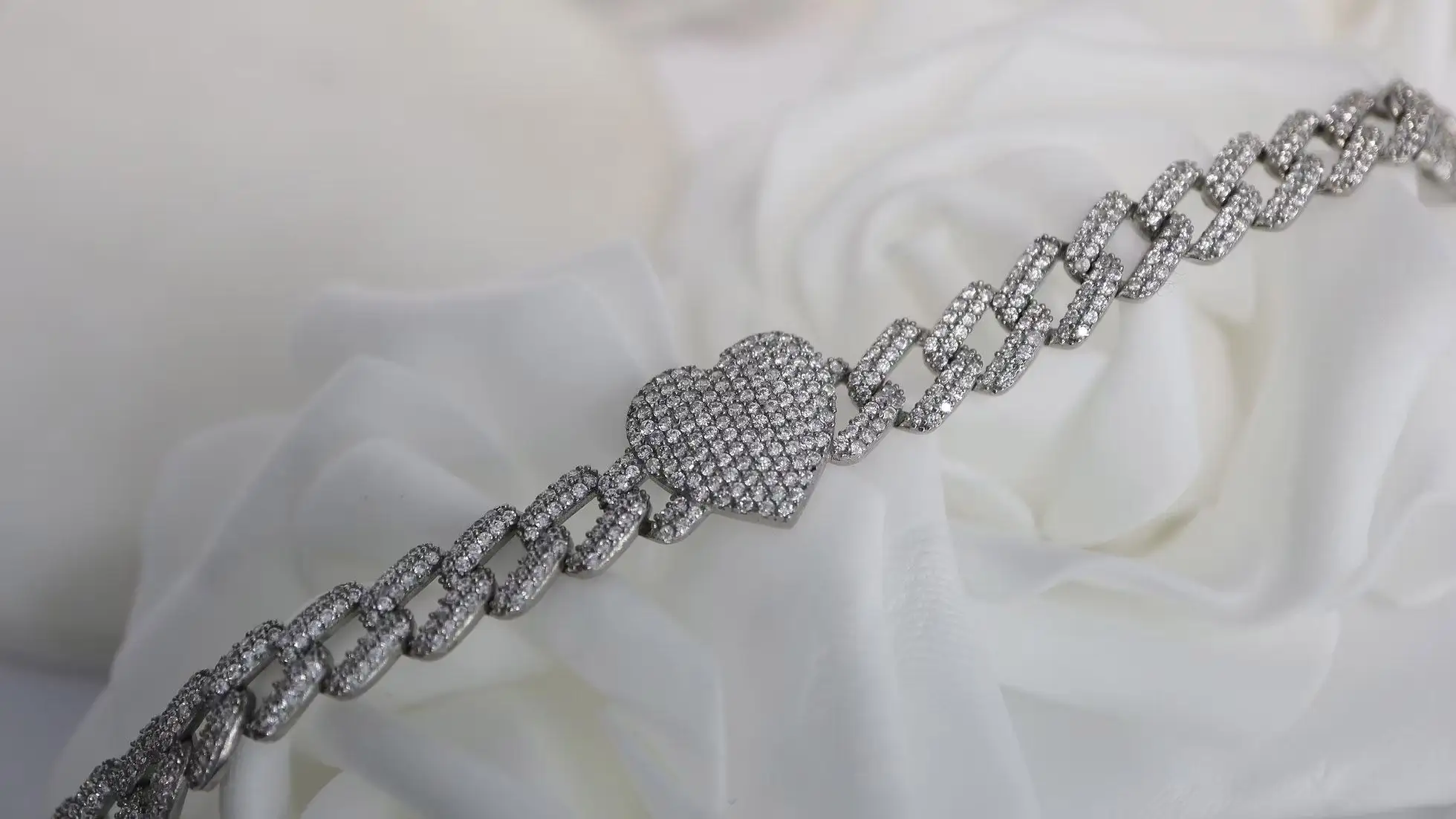 Herz-Zirkonia Silberarmband Damen